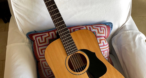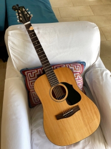 Anyway, this is the best travel guitar ever. The top folds down and straightens up easily with no problem. I packed it up to move from one place to another while there, and when I got to the new house and unfolded it, it was still in tune. Very, very comfortable neck and body. Surprisingly nice action as well. Good sound that’s mellow and reasonably loud—nice for folk and even jazz.